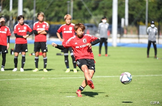 最初のトレーニングキャンプで選手たちは意欲に溢れていましたし、選手たちと一緒に目標を確認したり、チームの大きな流れ、コンセプトを確認できたという満足感はあります。ピッチに出る前にミーティングをしたり映像を見たりしながら、なるべく分かりやすく、選手が迷いなくプレーできるようにしたつもりです。選手が求めているプレーに対して失敗を恐れずトライしてくれていたので、そういった取り組みも選手たちは良かったのではないかと思います。各所属チームでのサッカーのスタイルがあると思うので、ピッチ内のことよりも日常生活の中でのトレーニング、休養、栄養のバランスや、一人ひとり自分の目標に対して成長をできるようにこれからやっていこうと話しました。(最終日のトレーニングは)2日前にトレーニングマッチをやり昨日はリカバーに充てたので、今日は元々トレーニングマッチを受けて強調すべきところにフォーカスしようと考えていました。ひとつはゴールに向かう、前を意識してプレーするために5対5をやり、(最後に行った)PKに関しては、今後の活動日数が少ない中で1月にAFC女子アジアカップもありますし、PKの緊張感をチームで作り、その中でプレーすることを求めて組み込みました。