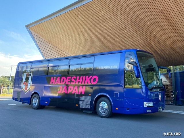 トレーニング後は最後のミーティングを行いその後解散。選手は所属チームへ戻り、WEリーグでの戦いに向け再び準備を進める日々を始めます。また解散後、数名の選手とスタッフはなでしこジャパン仕様にラッピングされたサッカー日本代表オフィシャルチームバスに乗車し帰路につきました。オフザピッチでも強力なサポートを受け、今後の大会に向けさらなる成長を目指します。