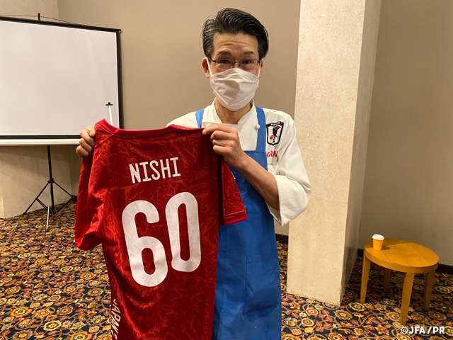 この日は、今回の遠征に帯同している西芳照シェフの誕生日ということもあり、昼食時にお祝いのユニフォームが西シェフに贈られました。サプライズの演出に「お礼は料理で返しますね」と話し、異国での連戦で緊張感の続くチームに、ひとときのリラックスした時間が流れました。オンザピッチ、オフザピッチ両面での一体感を強めながら、チームは次の戦いへと向かっていきます。グループステージ第2戦、ベトナム女子代表との試合は日本時間の1月24日(月)23:00キックオフです。