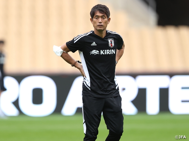 イングランド戦では受け身にならずにトライしていることを出していこうとした中で、考えながらのプレーになったことでノッキングしてしまったり、またプレスの同時性、連動性というところですべてが上手くいったわけではありませんでした。もちろん勝負事なのでその1試合に懸ける気持ちも持ちながらですが、自信を持ってオートマチックにプレーしてくる欧州王者に対してトライしたことで、我々が今後構築していかなければいけないところも見えました。守備はファーストディフェンダーの強度で後ろ(の選手の守り方)が決まってくるのですが、ファーストのスイッチが入らなかったことで後ろがどういった強度でいくのか、迷いが生じるシーンがありました。それによって守備の同時性をうまく作れずに、相手に前を向かれたり中盤を使われてサイドに展開されたりというシーンがありました。ここの守備の同時性は作り出せるようにやっていきたいです。攻撃では常に相手の背後を狙う、相手DFラインに脅威を与えるアクションを増やしたいですし、そこで空いたスペースを他の選手が使うプレーを、スペイン戦では見せていきたいです。