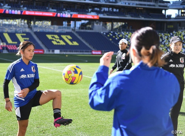 2月18日(土)、SheBelieves Cupに参加中のなでしこジャパン(日本女子代表)は試合会場のGEODIS Parkで公式練習を行いました。