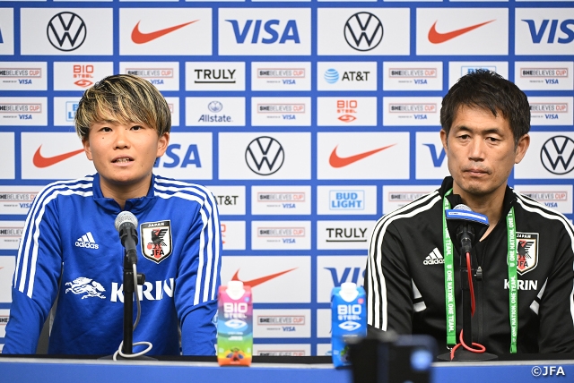 ここアメリカに来てSheBelieves Cupに参加して2試合、ブラジル戦、アメリカ戦と選手たちは本当にしっかりと戦ってくれています。その中で第3戦のカナダ戦は、成長している部分を勝利に結びつけて、結果を求めてしっかり戦っていきたいです。カナダはダイナミックなサッカーをしてくるチームなので、我々もアグレッシブなサッカーをしたいです。試合の流れと勝負へのこだわりを持ちながら、ワールドカップへの準備として選手の組み合わせを考えて、交代を含めて戦っています。特に3戦目は、組み合わせを考えて戦っていく中で、スタートのメンバーと交代でパワーを出してもらえる選手のバランスも見ながら、ワールドカップに向けた準備段階のひとつとして、ゲームに臨みたいです。