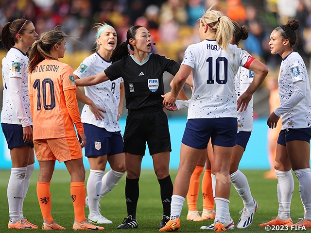 4年前の決勝の再戦となったアメリカ対オランダでも日本人審判員トリオが担当し、60分にはアメリカのリンジー・ホラン選手とオランダのダニエレ・ファン・デ・ドンク選手が接触して闘志むき出しとなる一幕があった。しかし、即座に山下主審が両選手と対話し、難しい試合をうまくコントロール。試合後には両選手が抱擁して健闘を称え合うシーンにもつながった。