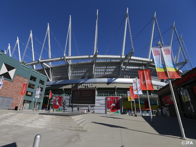 6月7日(日)、FIFA女子ワールドカップ カナダ2015のグループステージ第1戦・対スイス戦を翌日に控え、なでしこジャパンは試合会場となるバンクーバーのBC Place Stadiumで公式会見と公式練習を行いました。