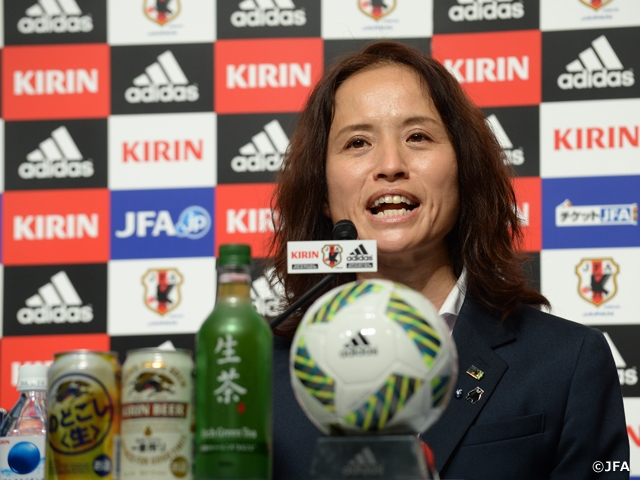 なでしこジャパンは未来に向かって進んでいます。ここまで常連だった選手に関しては最近少しでも伸びている選手、新しい選手に関しては非常に良いものを持ち、期待できるパフォーマンスをしていて、コンディションの良い選手を選びました。キャプテンを誰に任せるかは、現地へ入って選手と話しをして決めたいと考えています。また、阪口選手は代表戦で通算100試合に出場し、最高峰のレベルを持っています。より自覚を持って引っ張ってほしいと期待を込めて10番を付けてもらうことにしました。