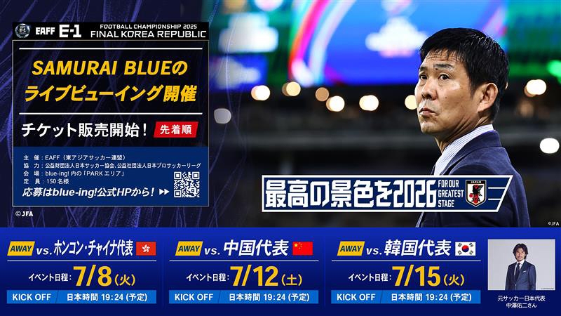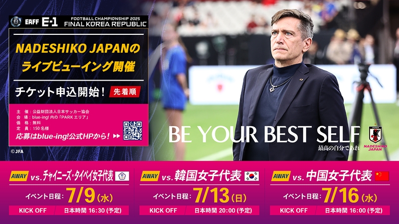 SAMURAI BLUE、なでしこジャパンの試合をライブビューイングで中継 東アジアE-1サッカー選手権2025決勝大会 韓国
