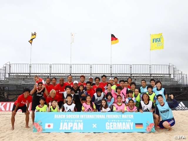 4/27(木)からはじまるFIFAビーチサッカーワールドカップバハマ2017への出場を控えたビーチサッカー日本代表。この日、ドイツ代表との国際親善試合には9-3で勝利し、その試合後にマルセロ・メンデス監督をはじめビーチサッカー日本代表選手全員がこのビーチサッカー教室に参加しました。また、北澤豪フットサル委員長も急遽参加し、参加者のみなさんと一緒にビーチサッカーを教わる立場で参加しました。