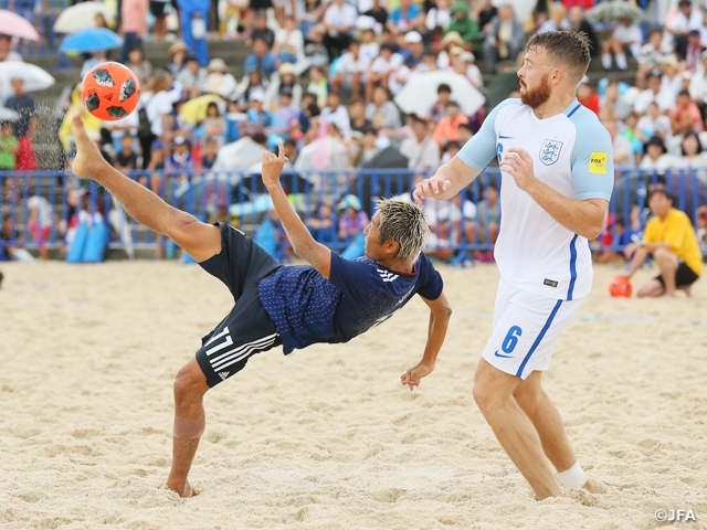 ビーチサッカー日本代表は7月8日(日)、兵庫県明石市大蔵海岸公園でビーチサッカーイングランド代表との国際親善試合に臨みました。