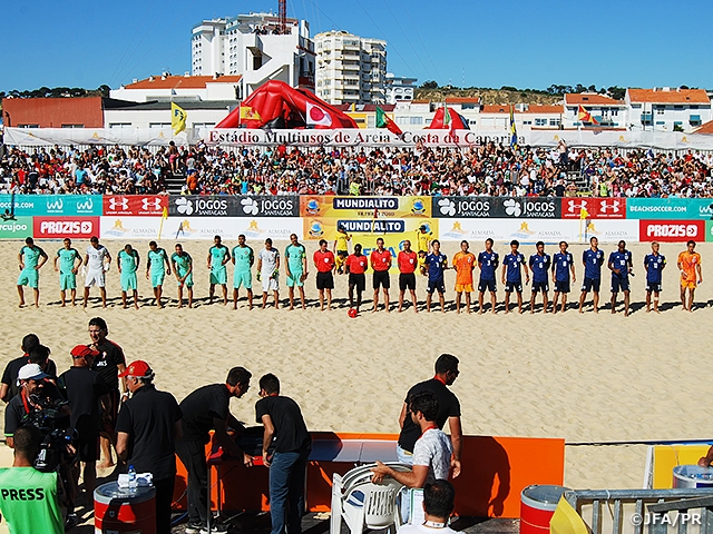 ビーチサッカーポルトガル代表は、2015年のFIFAビーチサッカーワールドカップで優勝し、現在世界ランキング2位(日本は9位)と世界の強豪国。ポルトガルサポーターでスタンドが埋め尽くされる中、現在ポルトガル遠征を実施しているU-18日本代表の影山雅永監督やコーチングスタッフも同じサッカーファミリーとして応援に駆けつけました。