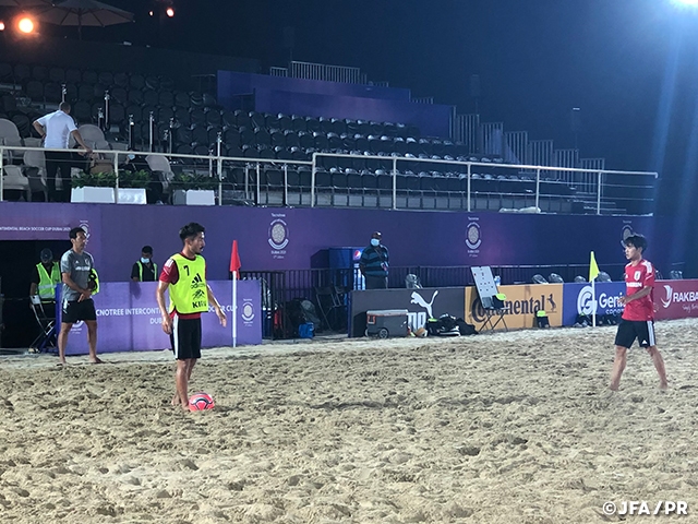 11月2日(火)に開幕する「インターコンチネンタル ビーチサッカーカップ ドバイ 2021」に出場するビーチサッカー日本代表は、10月30日(土)にアラブ首長国連邦(UAE)に入国し、31日(日)、11月1日(月)の2日間、会場となるドバイ・Kitaビーチのスタジアムにて公式練習を行いました。