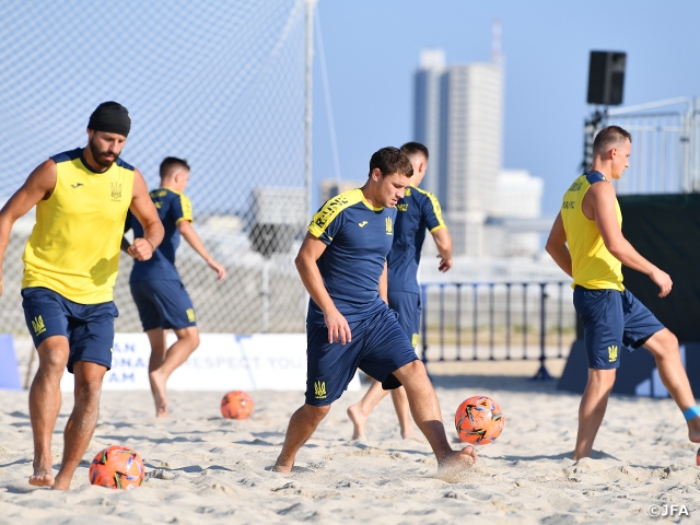 ビーチサッカー日本代表、ウクライナとの国際親善試合に向けて前日練習を行う