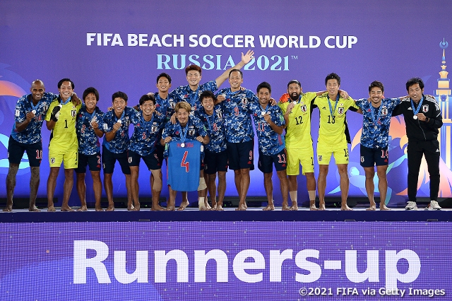 21年のビーチサッカーワールドカップでは、随所で勝負強さを発揮しながら勝ち上がり、初の決勝に進出します。惜しくも開催国のロシアに敗れて準優勝に終わりましたが、ビーチサッカー日本代表史上最高成績を残しました。