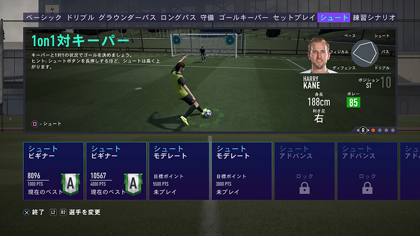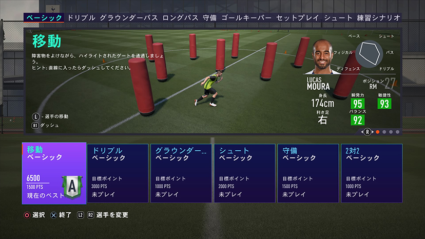 このモードでは、初心者から上級者まで、思い通りに選手を操作するためのテクニックを学ぶことが可能です。プレイごとにトレーニングメニューが分かれているので、得意なプレイを磨いて自分だけの武器にすることや、苦手なプレイの克服などに役立ちます。