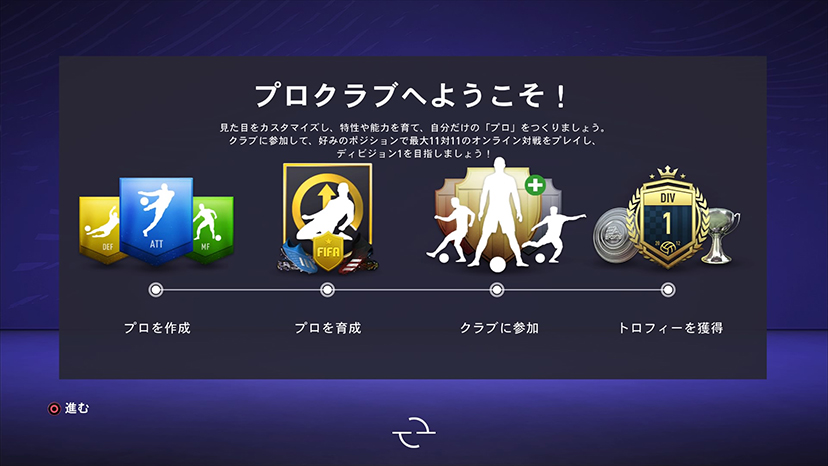FIFAシリーズの中でも「FIFA ULTIMATE TEAM」(FUT)と並んで人気の「プロクラブ」モード。自分の分身となる「選手」を作成し、オンラインで楽しむ他のユーザーとチームを結成、最大11人対11人で対戦できることがこのモードの最大の魅力です。