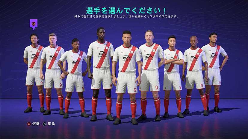 「ドロップインマッチ」では好きなポジションを選択し、そのポジションの選手のみを操作します。