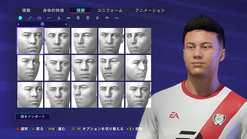 バーチャルプロでは、名前や実況名から出身国、生年月日を思い通りに設定することができます。さらに、顔や身長、体重も自由に設定可能なので、自分に似た選手を作るもよし、お気に入りの選手に似た選手を作るもよし、お好みのオリジナル選手を作成しましょう。