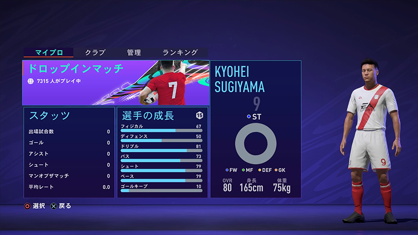 A. 作成した選手の能力を上げることです。今作から簡易的な5人対5人でやる「ドロップインマッチ」を行うことでも能力を上げられるようになったので、団体戦に慣れてもらいつつ、強化しましょう。ある程度、慣れることができたら、プロクラブのチームはSNSで募集をしていたりするので、参加してみてください。
