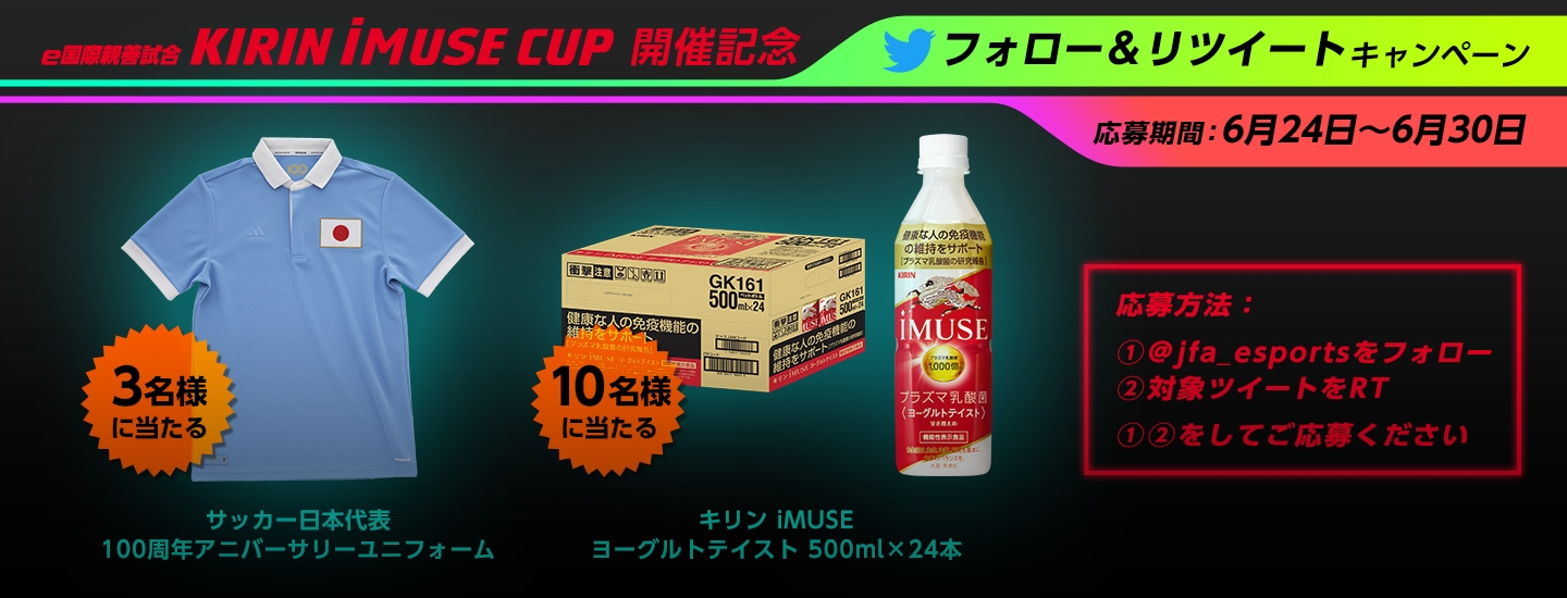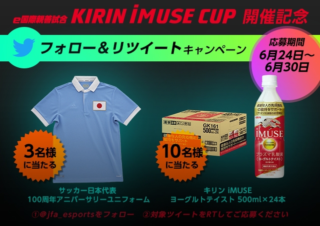 KIRIN iMUSE CUP開催記念! サッカーe日本代表Twitterキャンペーンのお知らせ