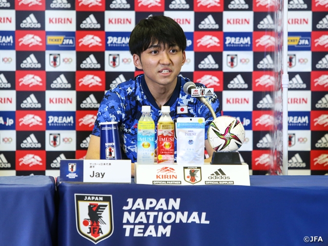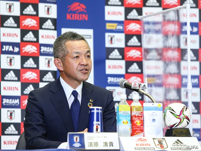 また、会見ではカテゴリーを越えて、同じく日の丸を背負う監督からのビデオメッセージも紹介されました。なでしこジャパン(日本女子代表)の高倉麻子監督は、「日本代表のアイデンティティである“誇り・責任・礼節・団結・覚悟”を胸に頑張ってほしい。」と笑顔でコメントを寄せ、SAMURAI BLUE(日本代表)の森保一監督は、「日本代表は常に勝利が求められるチーム。それをプレッシャーに感じず、楽しむことを忘れずに全力で思い切ってプレーしてほしい。」とエールを送りました。