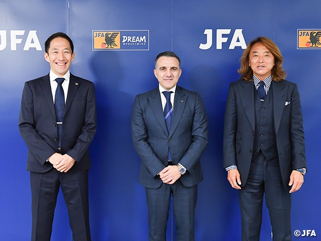 同席した北澤豪フットサル委員長は5年前を振り返り、ワールドカップ出場を逃して少し壊れてしまった日本のフットサルを託したブルーノ監督のその後のプロフェッショナルな仕事ともたらした成果に感謝するとともに、代表チームの強化にとどまらない日本フットサル界、ひいては日本サッカー界への多大な貢献についてメディアに語りました。