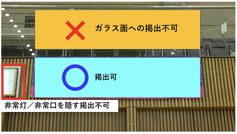 3. スポンサー看板、場内カメラ、スピーカー、大型ビジョン等を隠すような掲出はできません。