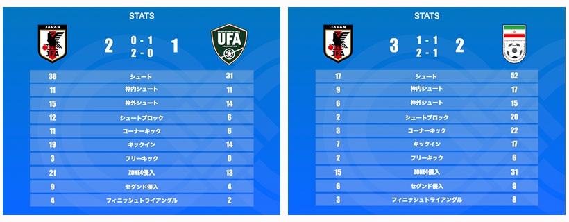 スタッツを見てわかるのは、やはり決勝のイラン戦では、攻撃の主導権が相手にあった中で、素晴らしい守備から勝利への活路を見出した戦い方が出来たのだと思います。木暮賢一郎監督も話しておりましたが、このイランに対して、攻撃の主導権をどうやって握っていくのかを今後の一つの課題として取り組んでいく必要があります。
