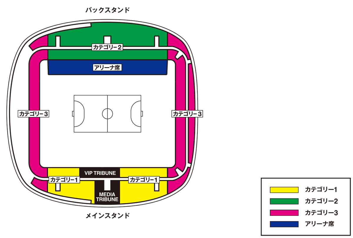 - ・太鼓などの鳴り物や応援フラッグの持ち込み・使用はカテゴリー3エリア内の指定された 一部の場所のみとなります。