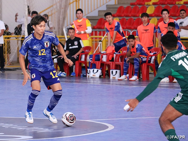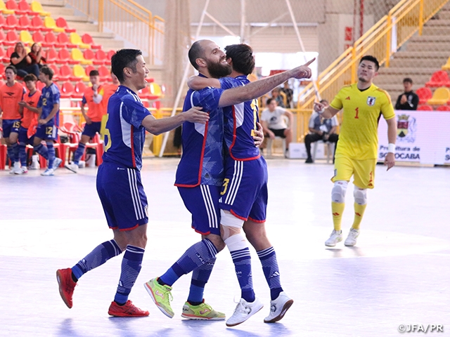 ブラジルサンパウロ州のソロカーバで開催されているFutsal Nations Cupに出場しているフットサル日本代表はサウジアラビア代表とのグループステージ第2戦に臨みました。前日の試合結果により、ブラジル代表がグループ首位で準決勝進出が決定したため、同じグループの日本とサウジアラビアで残りの1枠をかけて戦う大一番の試合となりました。サウジアラビア代表は木暮賢一郎監督が就任してから4度目の対戦となった今回もゴールキーパーをハーフラインまで押し上げて攻撃を仕掛けてきました。苦戦を強いられるも、最後まで相手の戦術に付き合うのではなく、日本代表のコンセプトを前面に押し出してゴールに迫り、最終スコア2対1で勝利を収め準決勝進出を果たしました。