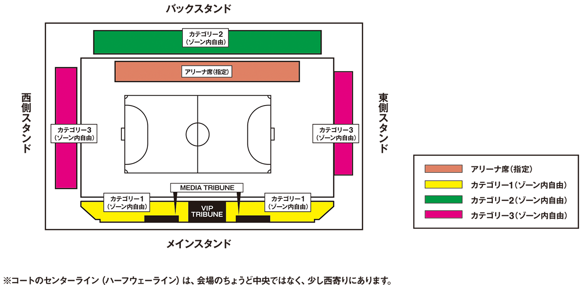 | ゾーン内自由席 | カテゴリー1 | 3,000円 | 3,500円 | カテゴリー2 | 2,500円 | 3,000円 |