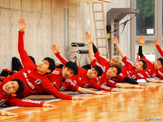 このキャンプ期間中に開催されたSAMURAI BLUEやU-24日本代表の試合を、スタッフや選手たちは夕食後に各自部屋で観戦し、日本を背負って闘う同じフットボールファミリーの姿に多くの刺激を受けました。チームは既に3月31日(水)より第2サイクルに突入していますが、セッションごとに質の高いトレーニングとなるよう一体感溢れる雰囲気の中で強化を図ります。