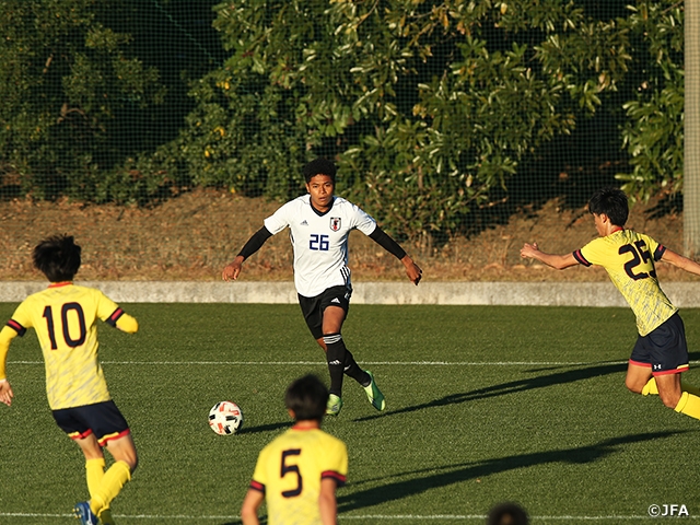 今日の試合ではサイドの崩しを意識して試合に入ったのですが、斉藤選手の得点の場面ではうまく真ん中で、4、5人がからみながら相手を崩して取れたゴールだったので、良かったと思います。AFC U-19選手権まであまり時間がない中で、一つひとつのトレーニングに集中して、今日の試合で出た課題をすぐに洗い出して次につなげていきたいです。特に自分が感じた課題の一つとしてはボールを取られた後、カウンターを受ける場面もあったので攻守の切り替えの早さだと思います。ピッチ外では新型コロナウイルス感染防止のため、一人で部屋で過ごす時間も多い中、なかなかコミュニケーションが取りづらいので、チームメイトとはピッチ上でより細かなコミュニケーションを取りながらやっていきたいと思います。