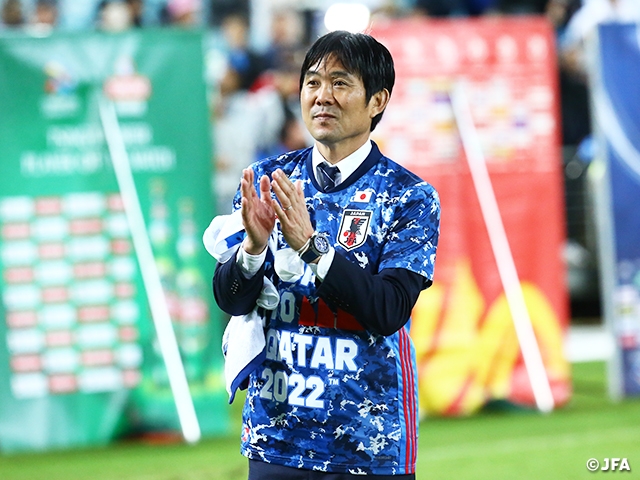 選手たちがいい準備をして、スタッフも環境づくりに尽くしてくれた結果、みんなの努力が勝利となってワールドカップにつながったことを嬉しく思います。選手のプレーには守って守り勝つのではなく、自分たちが前に出ていくという気持ちが表れていて素晴らしかった。スペースを使われることもありましたが、前向きな姿勢が2-0の勝利につながりました。その気持ちを大切にしながらこれからもやっていきたいと思います。