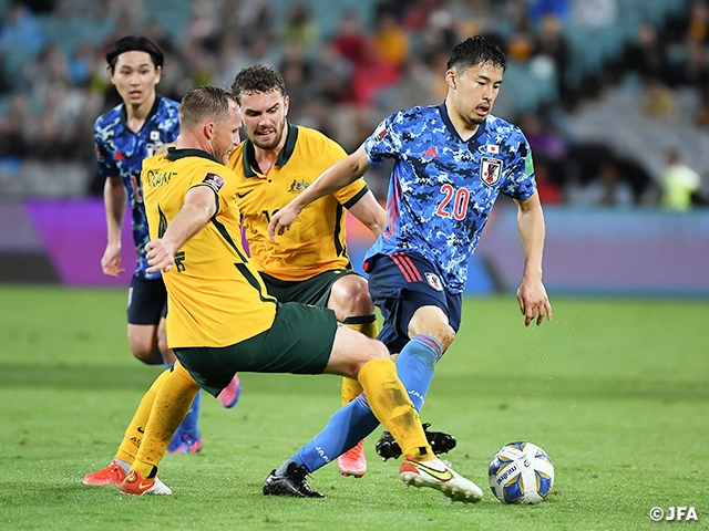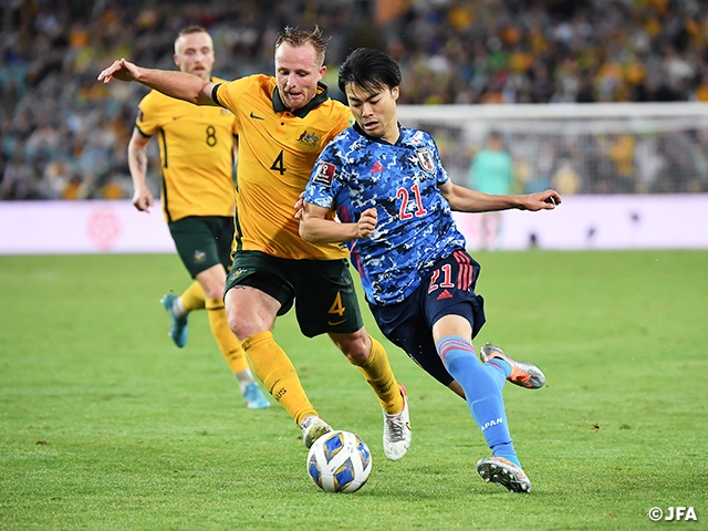 SAMURAI BLUE(日本代表)は3月24日(木)、シドニーのスタジアム・オーストラリアで行われたFIFAワールドカップカタール2022のアジア最終予選(Road to Qatar)第9戦でオーストラリア代表と対戦。途中出場の三笘薫選手(ユニオン・サンジロワーズ)の試合終盤の2得点で2-0の勝利を収め、6連勝でグループB2位以内が確定し、7大会連続7度目のワールドカップ出場を手にしました。オーストラリアは3位でプレーオフ進出が確定しました。