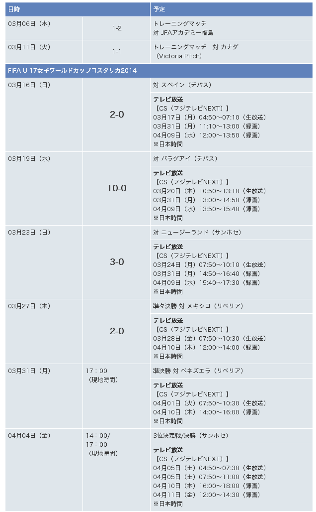 - 日本代表 U-17日本女子代表 FIFA U-17女子ワールドカップコスタリカ2014メンバー・スケジュール