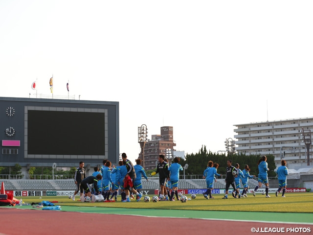 7日午後、宿舎でミーティングを行い、その後夕方から試合会場である大阪・キンチョウスタジアムで公式練習に臨み、一部をメディアに非公開した中で、連係面の確認に多くの時間を費やしました。