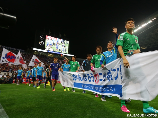 また、試合に先立って、チーム同様にワールドカップに出場する西村雄一レフェリー、相樂亨、名木利幸アシスタントレフェリーの審判団の壮行セレモニーが行われ、西村レフェリーが「素晴らしい試合になることを目指して、全力を尽くして参ります」と挨拶しました。