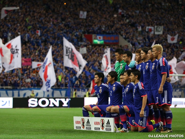 開始早々にFW柿谷曜一郎選手が左サイドを抜け出して惜しいシュートを放つなど、相手ディフェンスの裏のスペースを使うボールが増えて、動きが活発になります。後半58分に柿谷選手に代わってFW大久保嘉人選手が入ると動きと攻撃がさらに活性化され、日本代表が一方的に攻め込む展開になりました。