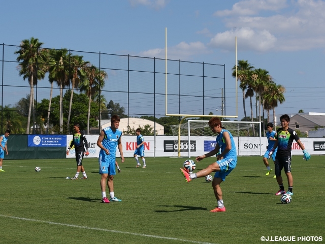 アメリカ・フロリダ州で2014 FIFAワールドカップへの直前合宿6日目を迎えた日本代表チームは6月4日(水) 午後、タンパ市近郊のクリアウォーターで夏の強い日差しの下、約2時間の練習を行いました。