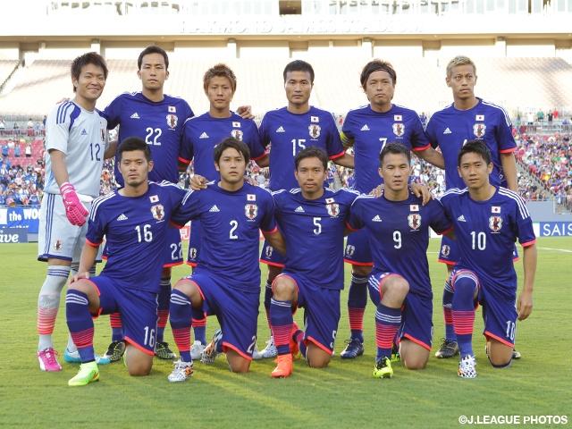 当地で続けてきた直前合宿を締めくくる試合に、日本は4日前のコスタリカ戦で左サイドバックを務めた今野泰幸選手を吉田麻也選手と共にセンターバックで起用し、左サイドバックに長友佑都選手を入れて、ボランチに遠藤保仁選手と山口蛍選手のコンビを配置。攻撃陣は前の試合から右MFと1トップを変えて、それぞれ岡崎慎司選手と柿谷曜一朗選手を起用し、GKには西川周作選手を採用しました。