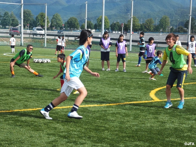 昼食後、山形県サッカー協会がこの日のなでしこジャパンWORLD MATCHに合わせて行ったフットボールデーのイベントに参加しました。