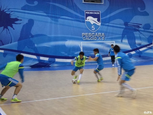 10月2日、フットサル日本代表のイタリアでのトレーニングがスタートしました。イタリア遠征前半の活動拠点は、ローマからバスで2時間30分ほどの街、ペスカーラです。10月4日から11日までの間に予定されている計6試合のトレーニングマッチに向けて、10月2日は2回のトレーニングを行いました。