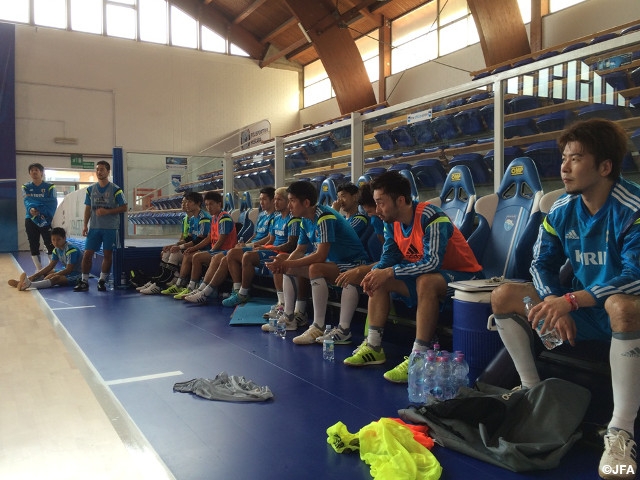 フットサル日本代表のイタリア遠征2日目は、来たるトレーニングマッチ6試合に向けてこの日も1日2回のトレーニングを行いました。