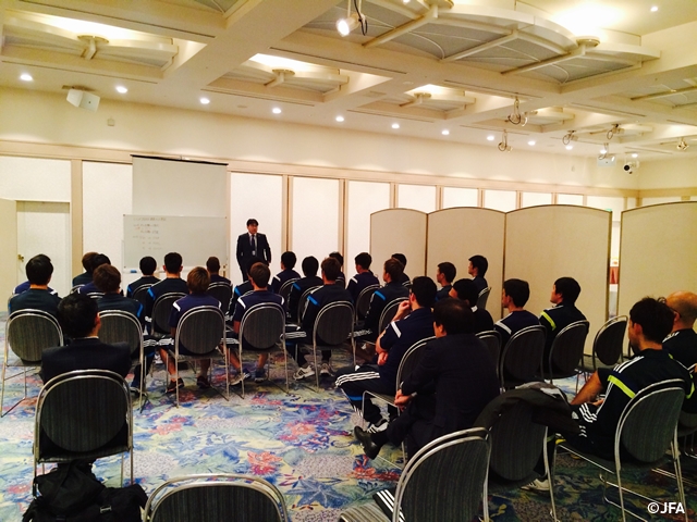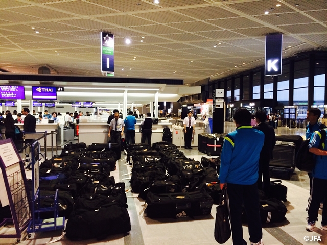 U-21日本代表のタイ・バングラデシュ遠征がスタートしました。10日(水)午後に集合したチームはミーティングを行い、手倉森監督は選手たちに対し「オリンピックでのメダル獲得」というチームの目標と、「暑熱順化」という本遠征の目的を確認しました。11日(木)には午前のフライトで羽田空港よりバンコクへ発つ予定でしたが、機材トラブルにより急遽、成田空港へ移動し、夕方バンコクに向けて出発。当初の予定から約8時間遅れの現地時間23:30に到着となり、スタジアムでの練習は中止としました。12日(金)にはいよいよ今遠征初の練習が行われます。二年後の目標を見据え、有意義な活動を目指します。