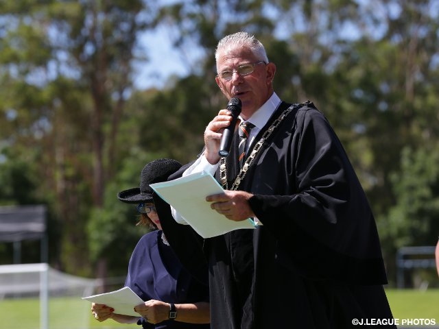 また、練習前にはセスノック市長ボブ・ピンセント氏が出席して、チームの6日間の合宿を締めくくるセレモニーが開催されました。
