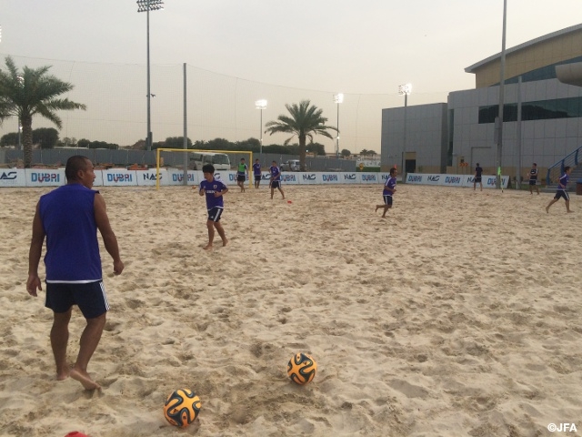 午後の練習は、数種類のシュート練習を行った後に紅白戦を行い、直前合宿2日目を終えました。明日は、ドバイに来てから最初のトレーニングマッチをビーチサッカーアゼルバイジャン代表と行い、AFC選手権に向けて引き続き調整します。