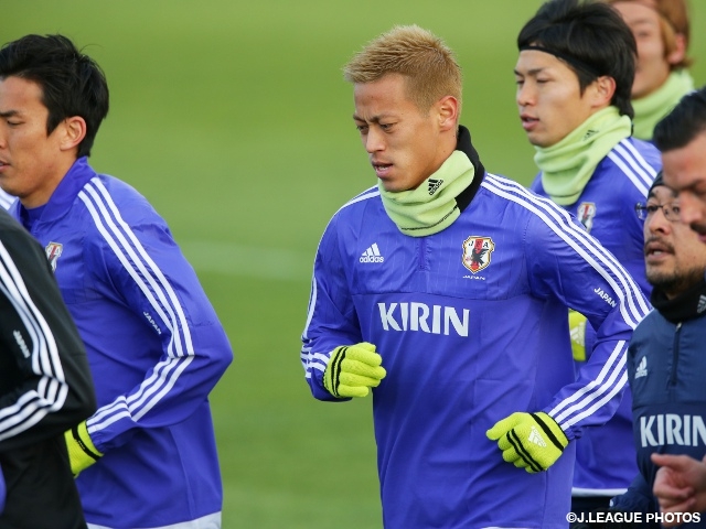 この日は多くの選手が前日に試合をしていることや、FW本田圭佑選手(ACミラン)やMF清武弘嗣選手(ハノーファー96)ら海外クラブ所属選手らは長旅の直後という状況を考慮して、練習は約30分で切り上げられました。