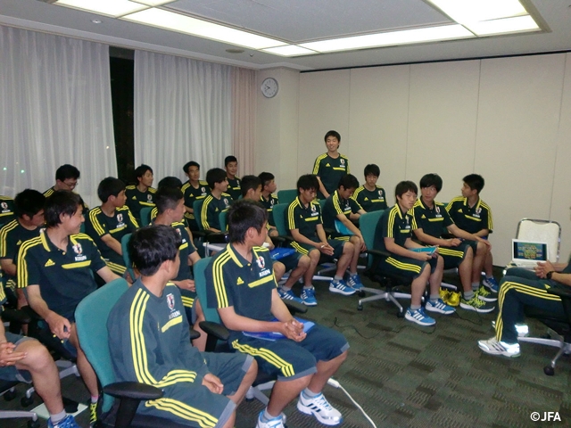 アライバルミーティングでは森山監督から、遠征の意義や選手に期待すること、チームコンセプト・チームメート・環境・体調管理など「多くのことに慣れること」を目標とすることが、選手に語られました。