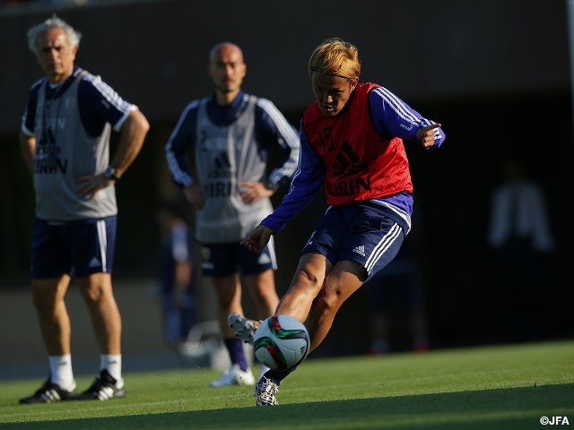 ヴァイッド・ハリルホジッチ監督は攻撃陣を中心に指導し、ボールを受ける時の体の使い方など動きの細かな部分にまで気を配りながら指導していました。