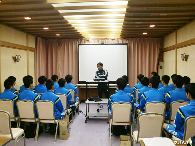 集合後のミーティングで木村浩吉育成年代代表チームダイレクターより「失敗することを恐れないで欲しい。短いトレーニングキャンプだが、毎回集中して各々自分の長所を思い切り発揮して欲しい」というメッセージが伝えられました。
