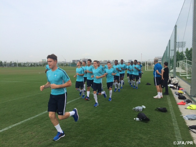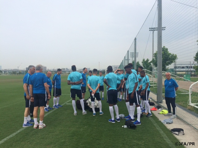 フランスのクレールフォンテーヌで数日間のトレーニング合宿をこなしてからの長旅とあって、この日は軽い練習で汗を流し、24日(水)からの大会に向けて英気を養いました。